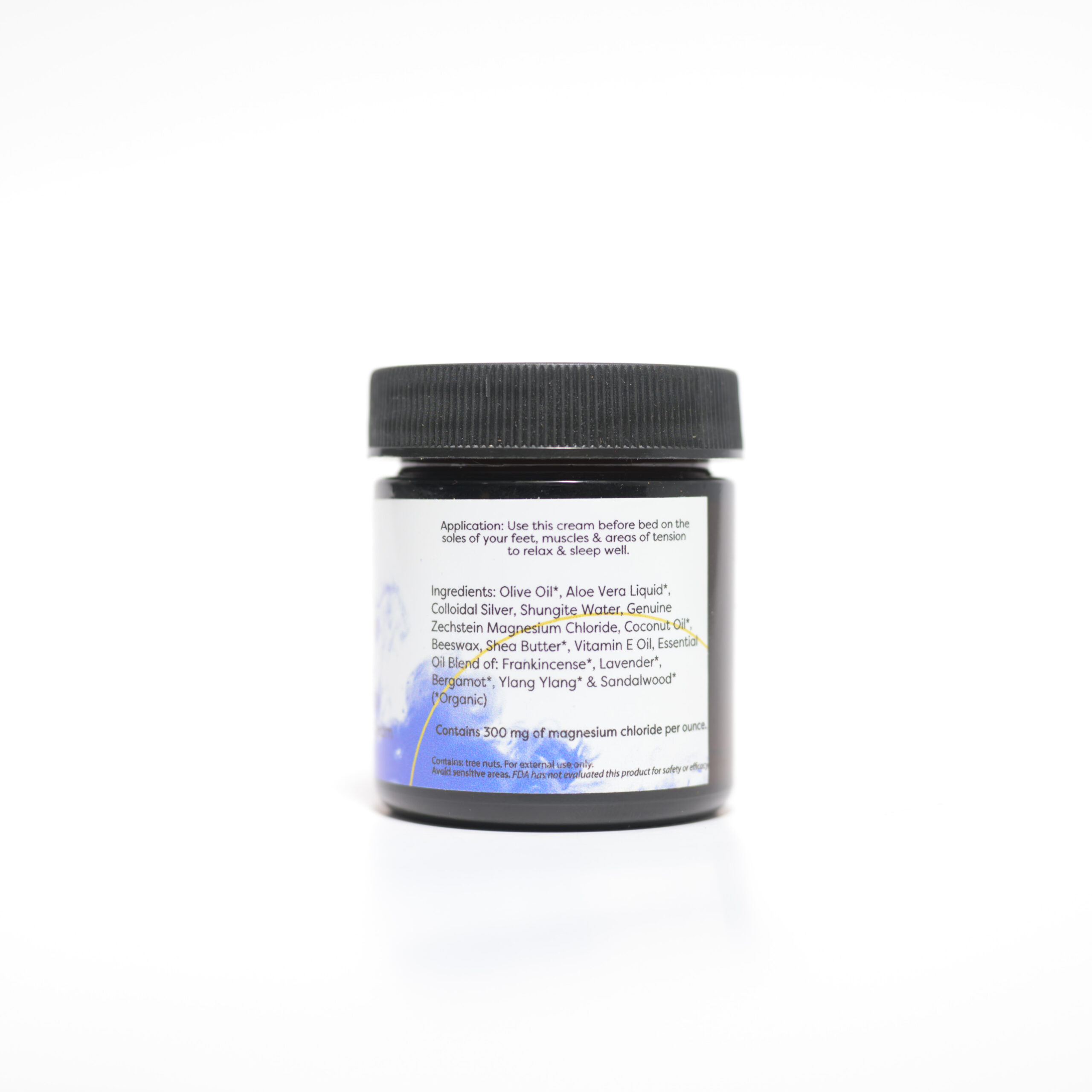 - Key Ingredients: Olive Oil*, Aloe Vera Liquid*, Colloidal Silver, Shungite Water, Genuine Zechstein Magnesium Chloride, Coconut Oil*, Beeswax, Shea Butter*, Vitamin E Oil, Essential Oil Blend of: Frankincense*, Lavender*, Bergamot*, Ylang Ylang* & Sandalwood* (*Organic)