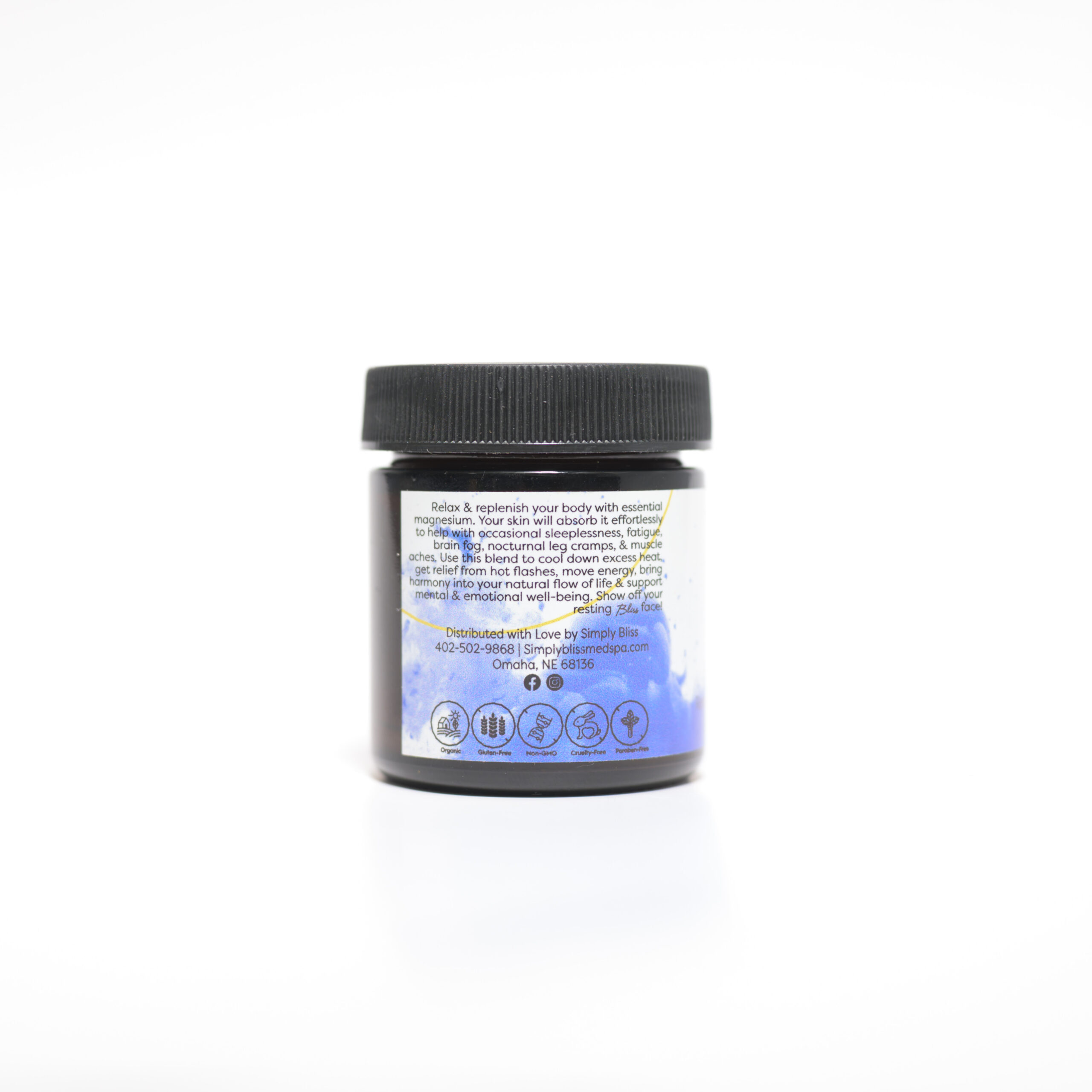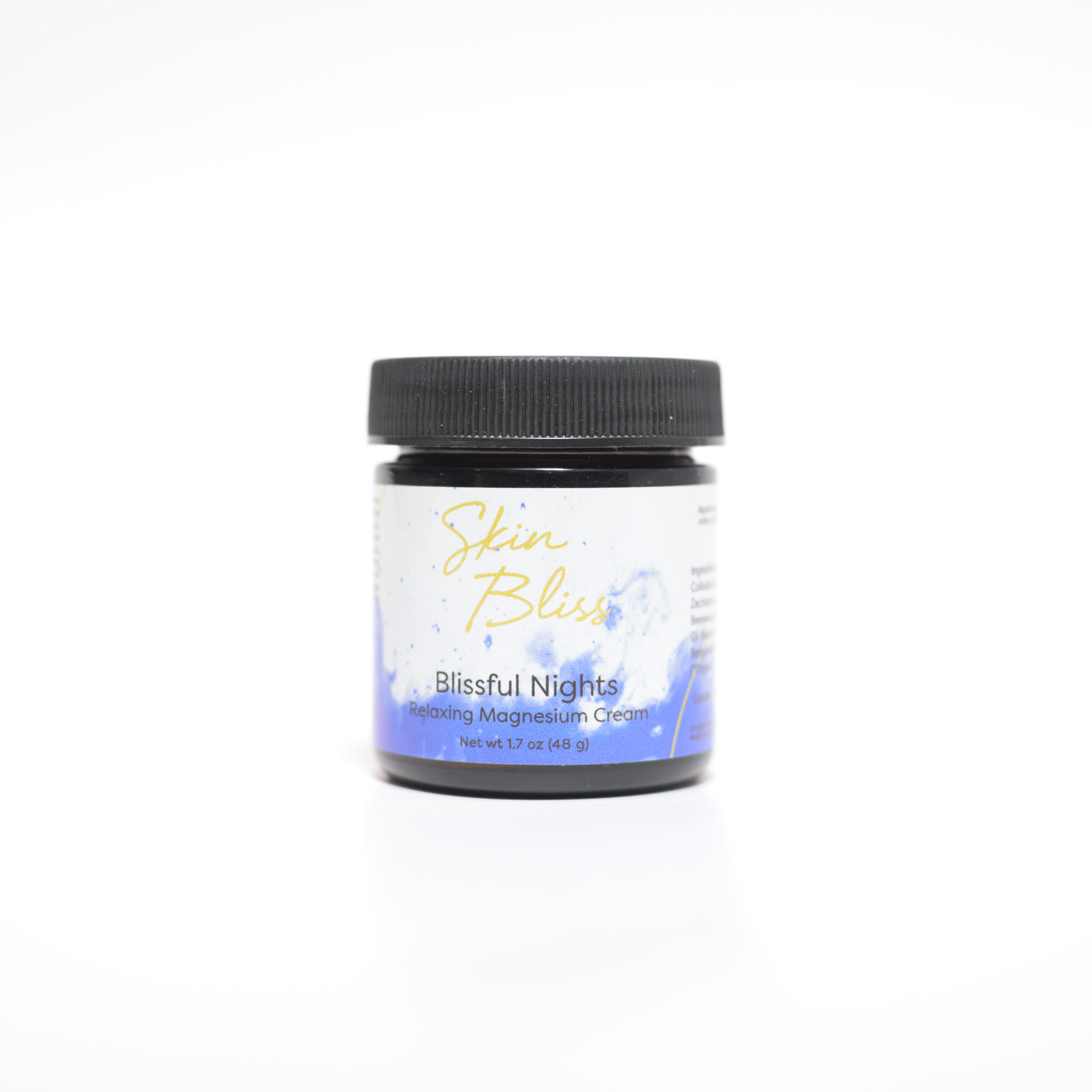 - Product Description: Skin Bliss Blissful Nights Relaxing Magnesium Cream is a luxurious, all-natural topical designed to promote deep relaxation, restful sleep, and muscle recovery. Infused with a blend of organic ingredients and pure magnesium chloride, this cream offers both physical and aromatic benefits to ease tension and support overall well-being. Experience the calming effects of Blissful Nights Relaxing Magnesium Cream by incorporating it into your nightly routine. Its blend of natural ingredients and soothing aroma can help ease you into a peaceful night’s sleep.