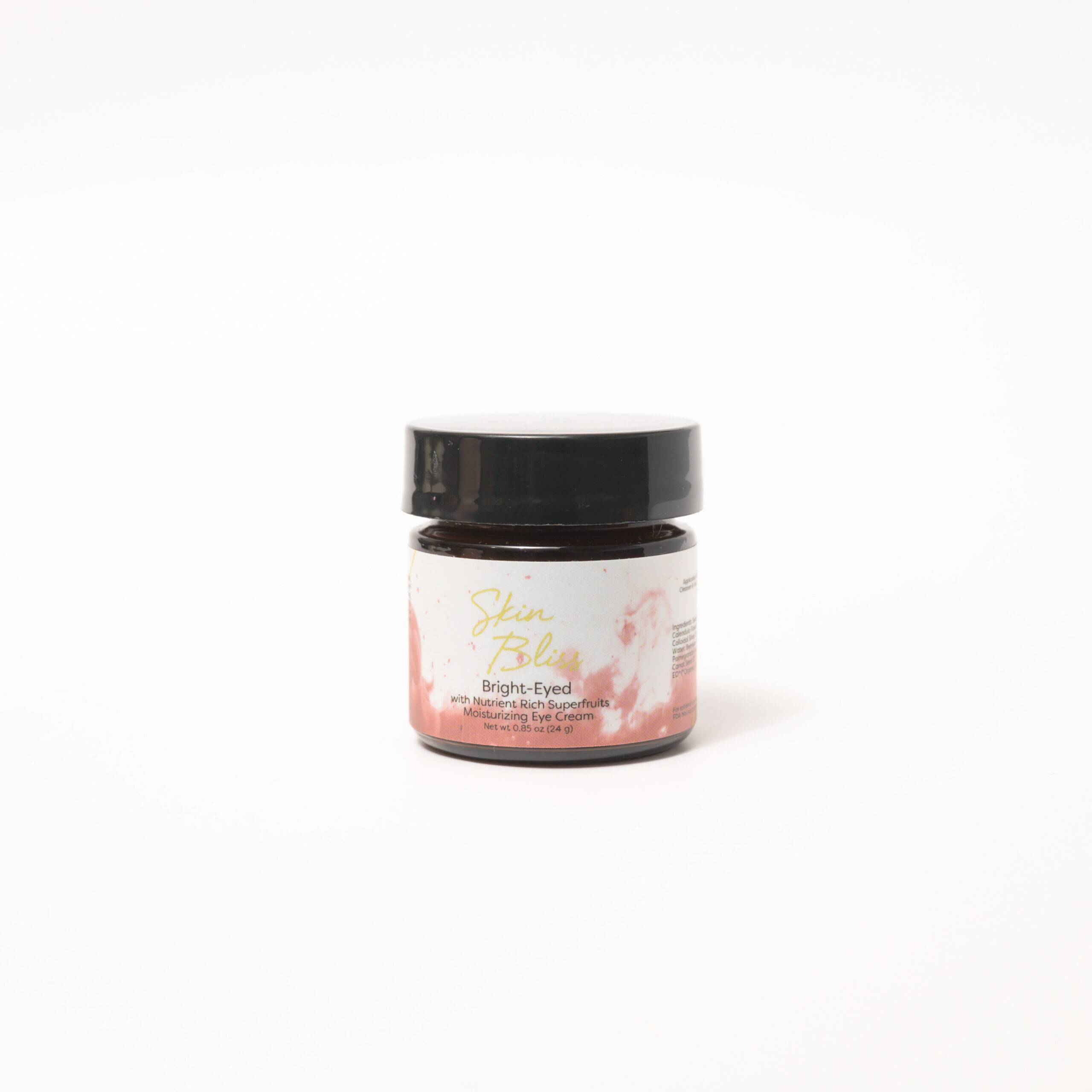 - Product Description: Skin Bliss Bright-Eyed Eye Cream is a natural, nourishing formula designed specifically for the delicate skin around the eyes. Known for its clean, organic ingredients and a gentle yet effective blend that helps reduce the appearance of puffiness, fine lines, and dark circles. Our Eye Cream is a luxurious, botanical-rich formula designed to nurture the delicate skin around your eyes with nature’s most powerful plant-based ingredients. Handcrafted in small batches, this cream blends healing herbs, rejuvenating oils, and rare minerals to visibly reduce puffiness, fine lines, and dark circles — without a single synthetic ingredient.